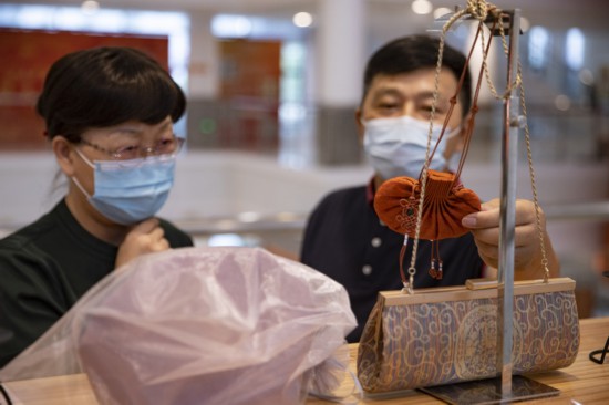 市民在“非遺會客廳”參觀非遺藝術品。
