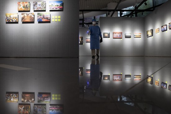 市民在參觀“上海市民文化節回顧攝影展”。