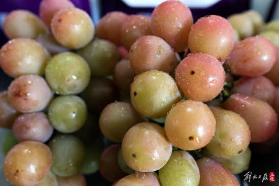 今年本地氣候條件比較好,不僅雨水少,早晚溫差也較大,非常有利于葡萄著色、成熟,今年各品種葡萄較往年提早10余天成熟。