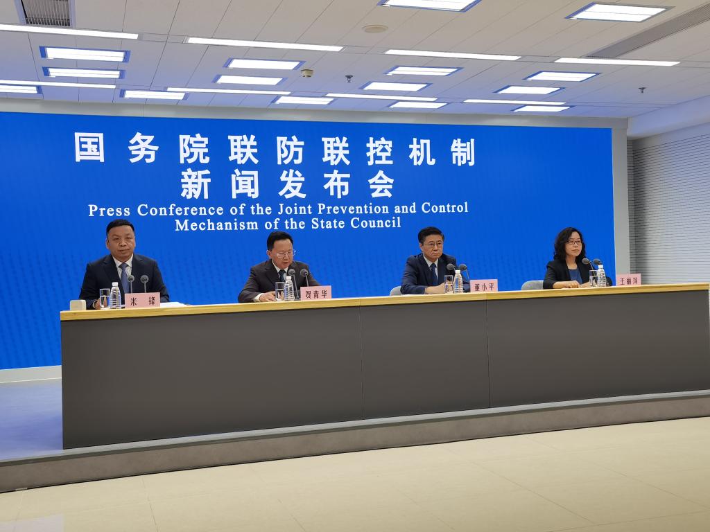 國務院聯防聯控機制新聞發布會現場。(新華社記者 宋晨 攝)