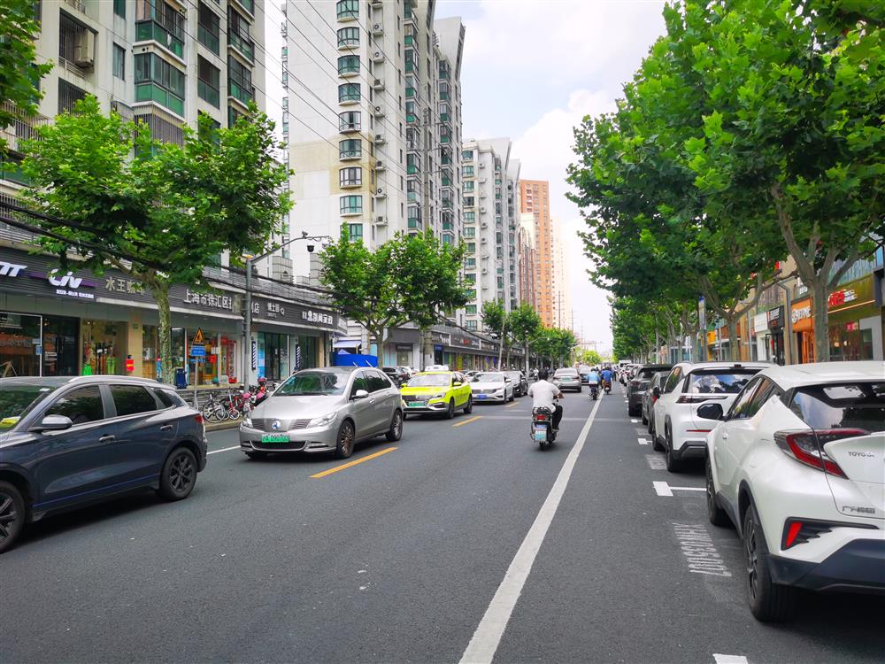 西南位育中學考點門口,停滿了送考家長的車。按照規定,他們可以點對點接送孩子。?? 雷冊淵 攝