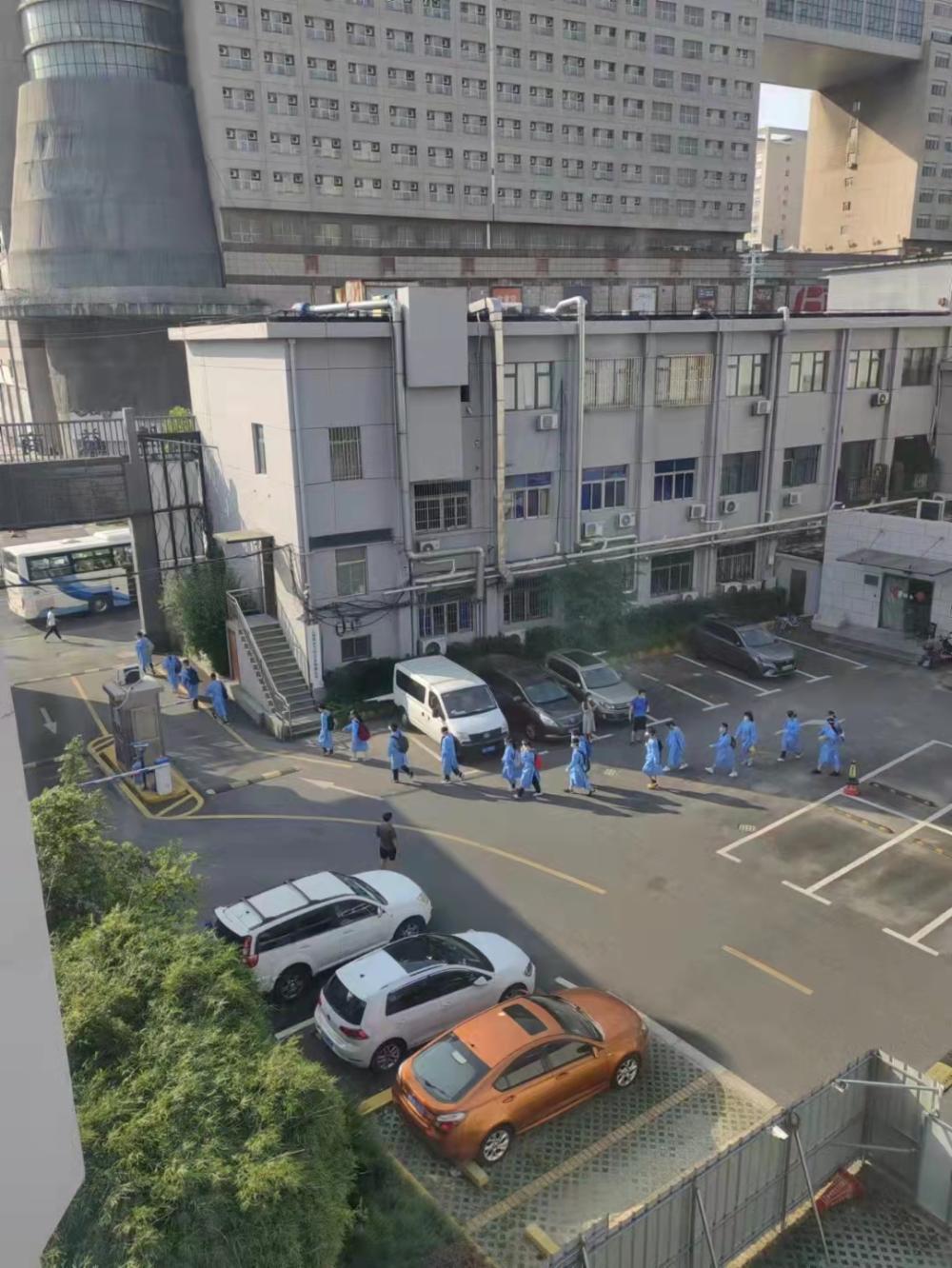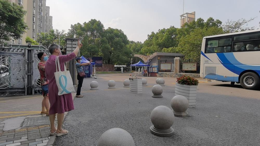 趙夢和一同在酒店隔離的家長無法送考,只能在窗口拍下孩子們出發的身影。?? 圖片由受訪者提供