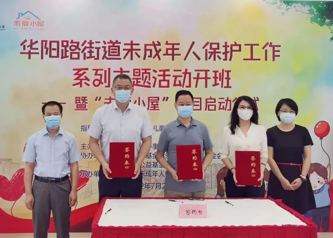 7月22日上午,由上海樂揚紅樹林慈善公益中心提供公益服務專項資助的“未愛小屋”在華陽路街道未成年人保護工作站正式揭牌簽約。