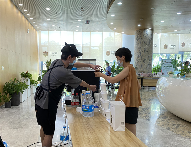在張江·矽岸國際園區的主會場,除了美甲,“譜夢列車”還帶來了“無聲咖啡”“匠心按摩”“電子維修”“飾品制作”等多個殘障人士服務項目。