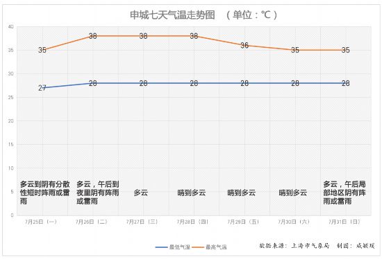 8月之前的上海,目之所及,最高氣溫皆是35℃高溫線打底。今天(25日),上海重回高溫日,最高溫可達35℃。上海中心氣象臺預報顯示,從今天開始,副熱帶高壓牢牢掌控我國南方地區至少一周時間,高溫持續發力,耐力十足。上海仍在高溫實力選手之列,本周極端最高溫預計在38℃附近,晴熱不退,周初周末有局部雷陣雨。