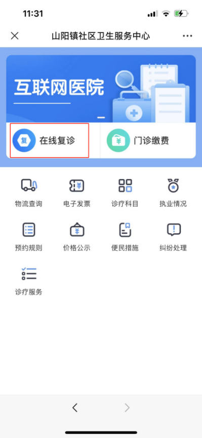 1.互聯網醫院首頁點擊“在線復診”,選擇自己所需就診科室,進入復診掛號;