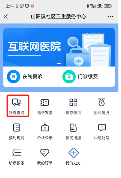 5.患者在訂單支付頁面添加配送地址信息,完成線上支付,即可在家等待快遞送藥到家。在此期間,可通過“互聯網醫院-物流查詢”功能實時獲取物流信息。
