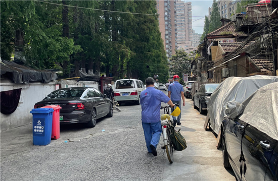上海的夏天酷熱難耐,在戶外只走一會兒衣衫便被汗水浸透,有時候強降雨還會“偷襲”,淋得人措手不及。在這樣的天氣里,仍有許多人奔波在外,堅守著崗位,其中就有不少物業維修人員。