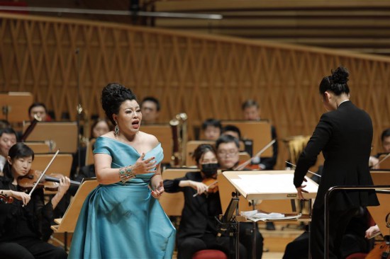 7月26日晚,她亮相捷豹上海交響音樂廳,和指揮家張潔敏執棒的上海交響樂團帶來一場音樂會。上半場,是她駕輕就熟的意大利歌劇選段,劇目包含《丑角》《鄉村騎士》《西西里晚禱》等。而下半場是她鮮少嘗試的德語歌劇,包括瓦格納歌劇《唐豪瑟》選段“你,親愛的殿堂”和《特里斯坦與伊索爾德》選段“愛與死”。