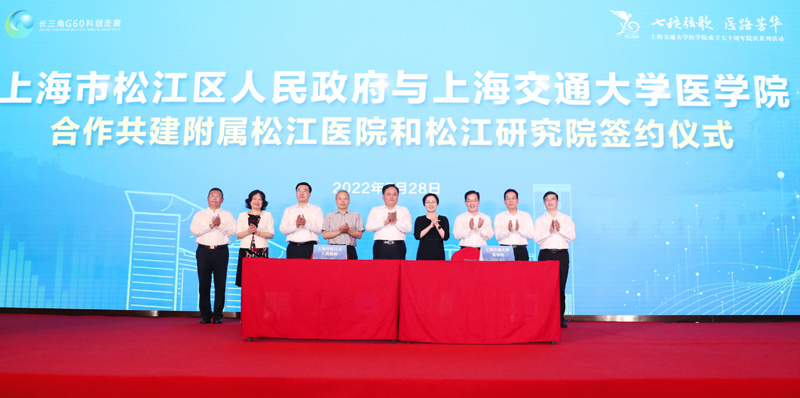 大會宣布上海交通大學醫學院松江研究院正式成立,中國科學院院士段樹民被聘為上海交通大學醫學院松江研究院院長,國家兒童醫學中心(上海)兒童腦科學中心主任、上海交通大學基礎醫學院解剖學與生理學系主任徐天樂教授被聘為上海交通大學醫學院松江研究院執行院長,上海交通大學醫學院附屬松江醫院(籌)院長林煒棟被聘為上海交通大學醫學院松江研究院常務副院長?,F場,李謙和范先群共同簽訂《上海市松江區人民政府與上海交通大學醫學院關于共建附屬松江醫院和松江研究院的合作協議》。