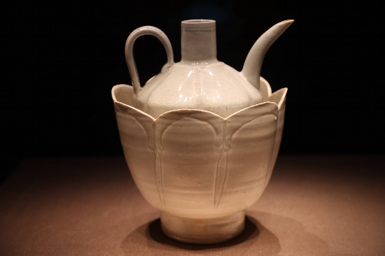 展覽上展出的北宋景德鎮窯青白釉注子溫碗。
