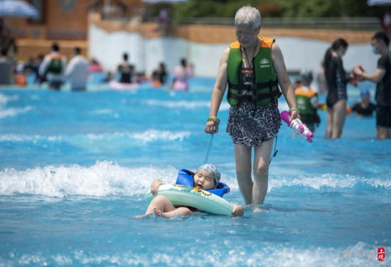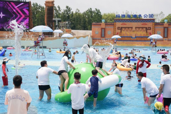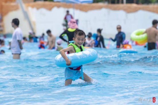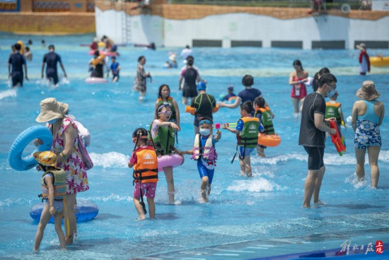 申城晴好天氣回歸,市民瑪雅水公園戲水消暑