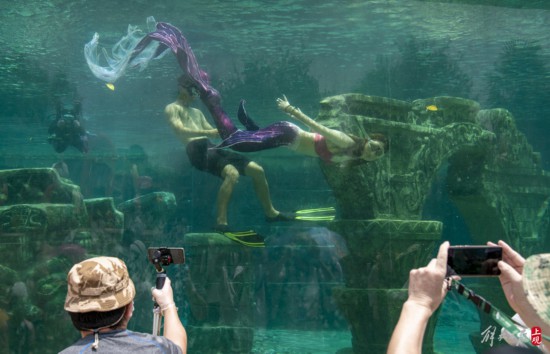 瑪雅水公園潛水區推出了美人魚表演,柔美而靈巧的姿態吸引了許多游客的目光。