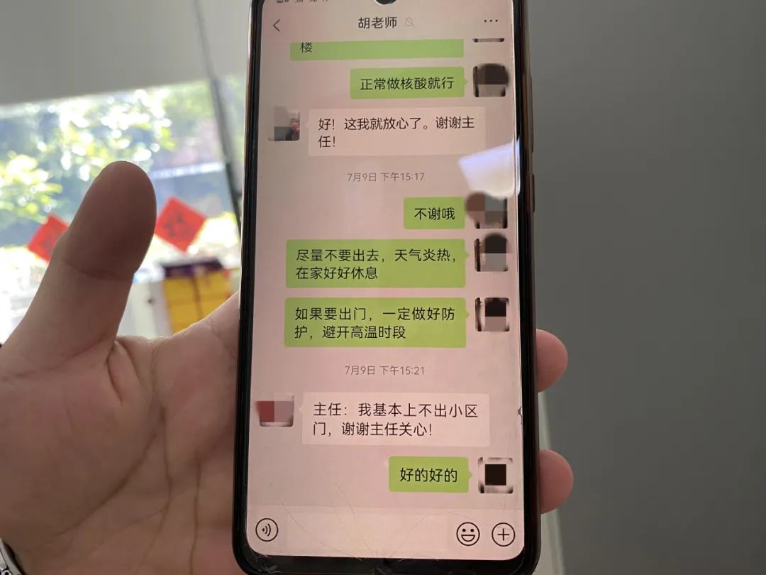 從疫情封控期間到現在的高溫天,每隔幾日,工作人員便會通過手機或上門,問問老人有沒有生活上的困難,通過拉家常的方式,了解他的日常起居和身體狀況,這樣也能給老人解解悶。