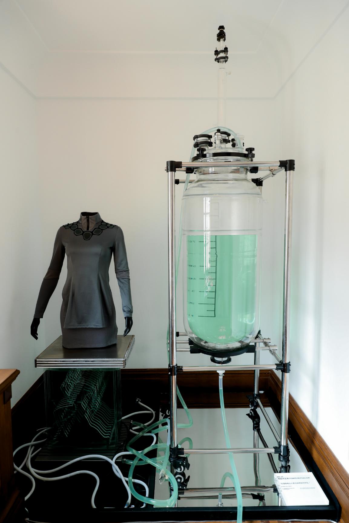 胡可兒帶來的作品“電能共生體”是一種可穿戴自驅動型藍藻細菌發電材料,能夠從人體汗液、陽光中獲取養分,通過藍藻的光合和呼吸作用釋放電能,為小型可穿戴設備提供綠色能源,滿足近未來可穿戴傳感網絡與物聯網的分布式能源需求。