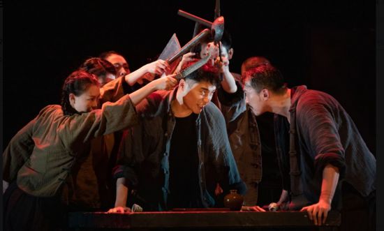 《原野》是戲劇大師曹禺先生的經典著作,曹禺先生在原著中展現出復雜鮮明的人物性格,并借鑒了西方表現主義的藝術手段,與現實主義相結合,而導演何念帶領一眾青年主創用新理念、新形式、新手法,讓戲劇經典展現了新的魅力。主創們將故事分成了三段輪回,第一個輪回是故事概貌,第二個輪回是更加詳細的敘述,第三個輪回則是無盡的輪回,以此來增強敘事的豐富性。何念版《原野》在不改變原著內核和臺詞的前提下,從仇虎的角度切入,大膽調整劇本結構,尤其注重人物心理和內心情感的表達,用“朗讀之下”的訓練法來激發演員的想象力,并加強運用懸疑、肢體、意識流等表現主義方法,進行人性的解讀和挖掘。