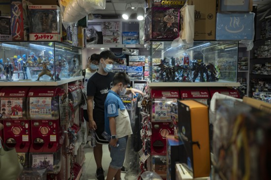 文廟路上的漫玩屋,張老板坐在收銀位上,年輕的身影接踵而至,他們在一樓逛完又沿著木質樓梯上了二樓,張老板經營這家動漫周邊店已經15年,每年夏天的暑假都是漫玩屋生意最好的時間。然而老城廂改造在即,老張在文廟路上經營的兩家漫玩店都將搬新址。