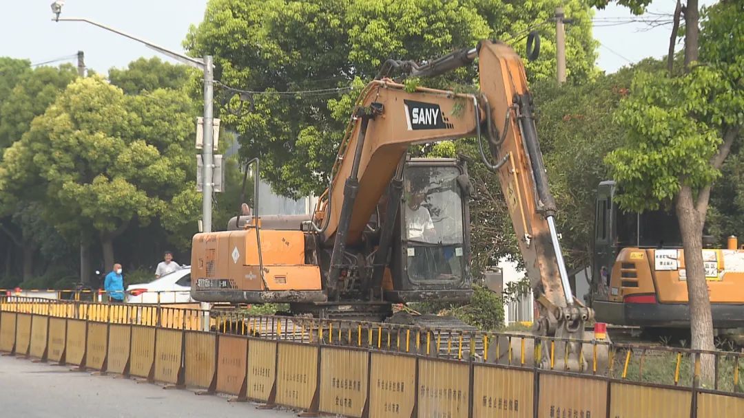 近日,記者來到金山區漕涇鎮古崗路看到,挖掘機正在進行道路的翻挖。