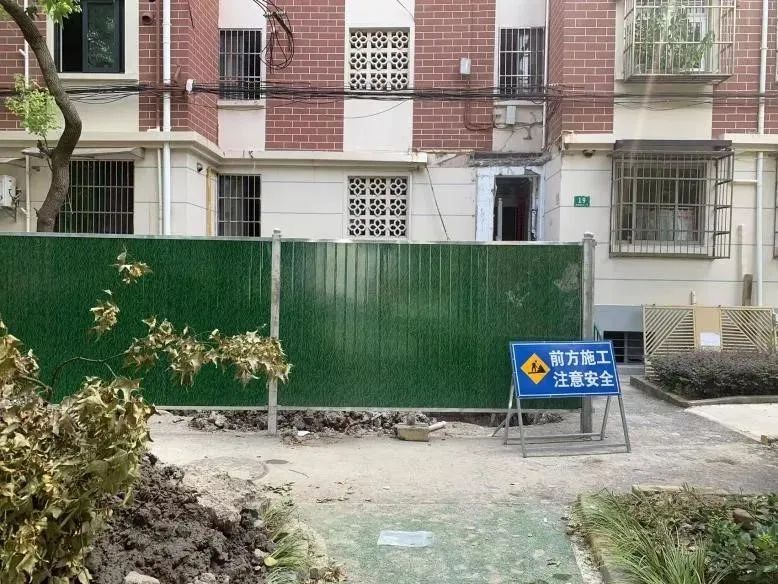 下午近3點,記者來到巴林路61弄19號樓下,這里被綠色擋板圍了起來,側面預留了供居民進出時使用的通道。