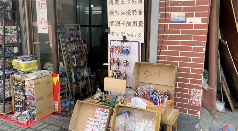 從中華路拐進文廟路,沿街可以看到多家模型玩具商店?!昂澜苣P屯婢摺钡睦习迥?,一大早便將店內玩具悉數擺出,打出“50元一個”的標語,低價批量銷售庫存玩具。有些手辦店里的結賬區排起長隊,不少市民專程前來,趁著清倉特價“撿漏”。這里曾被稱為“上海秋葉原”,在金橋商務區工作的80后徐先生說:“基本上日本剛出一款新的手辦,沒幾天在文廟就能買到。小時候的零花錢基本都貢獻給這里的店家了?!?/p>