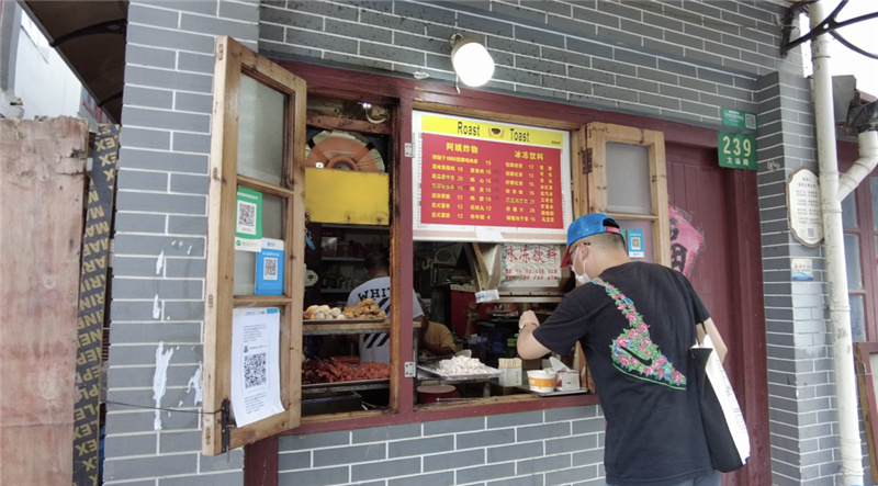刨冰奶茶、香酥雞柳、燒餅油條、文廟菜飯……文廟街區的餐飲小店也很忙?!吧虾M﹄y找到這樣的小吃店了,每一口都是回憶?!焙孪壬鷮3虖暮缈趨^趕來,第一站便是去“阿姨炸物”買根炸里脊肉,“小時候就吃這一家,早先只要2元錢一根,現在都15了!”