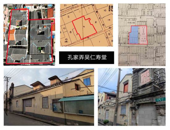 孔家弄和紅欄桿路相交處的業主吳仁壽堂,在18/4地塊建造絞圈房和早期石庫門,統稱仁壽里。業主先建造前店后宅的雙絞圈房(行號路圖紅色部分),現今孔家弄11號,后來,建造孔家弄23號和27號屬于和17弄1號和2號,統稱“仁壽里”(行號路圖藍色部分)。