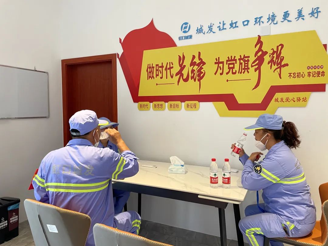 這幾天,申城再度出現持續高溫,給戶外作業帶來嚴峻“烤”驗。虹口城發公司打造愛心驛站,為環衛、園林、市政、停車管理等一線員工提供避暑休息的場所。