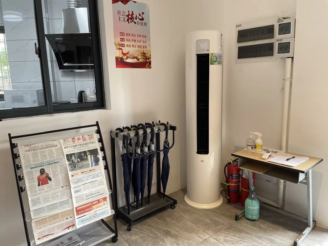 據了解,這個愛心驛站是虹口城發公司利用閑置房屋改造的戶外職工驛站,讓一線員工有個納涼休憩的場所。