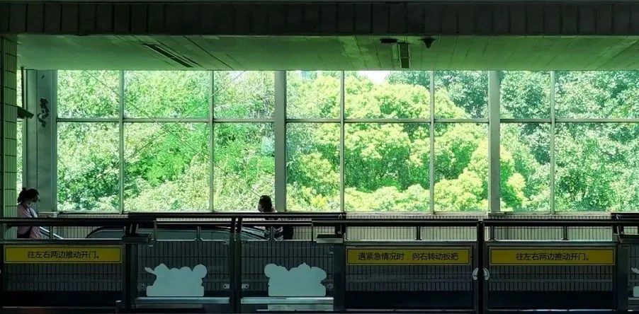 來到站臺處,透過窗子向外望,只見到處是生機盎然的綠意,偶爾還可以聽到清脆的鳥叫聲和蟬鳴,仿佛置身于陰涼幽靜的樹林間一般,讓在此候車出行的上班族能夠感受到燥熱的身心漸漸平靜、舒適。