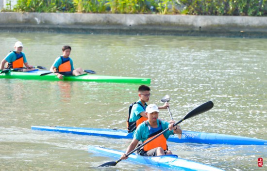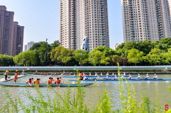 賽艇、龍舟、皮劃艇等水上項目亮相,蘇州河上激情開槳,激起浪花陣陣。