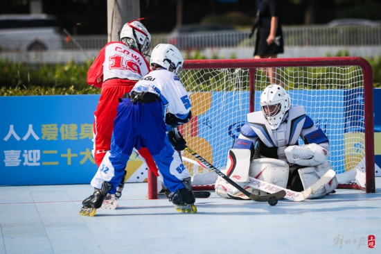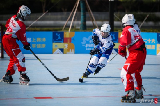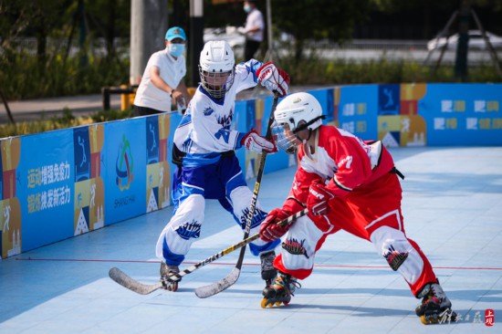高溫天氣并沒有阻止小朋友們穿戴專業設備進行輪滑冰球比賽。
