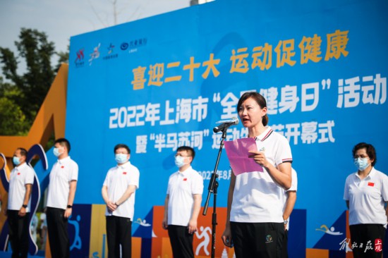 2022年8月6日,“喜迎二十大 運動促健康”2022年上海市“全民健身日”活動暨“半馬蘇河”運動生活節開幕式在普陀蘇州河畔舉行。