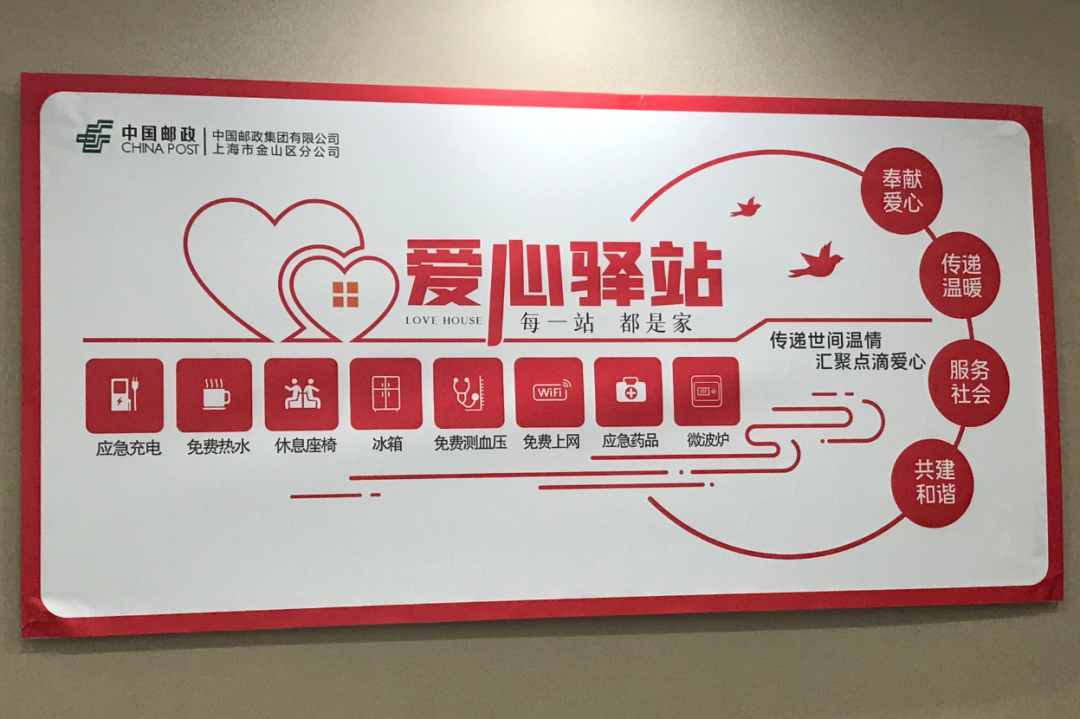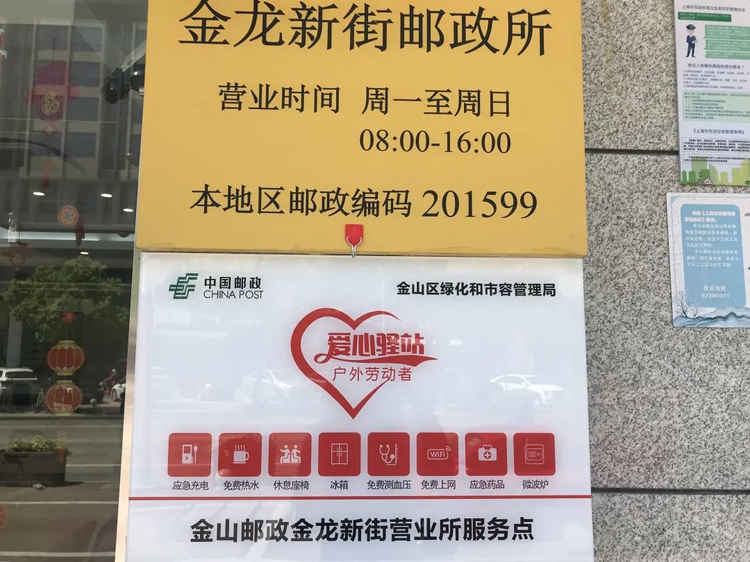 “戶外勞動者愛心驛站”于今年8月5日正式啟用。據介紹,依托金山郵政公司遍布全區的網點,此次共設置了16個“戶外勞動者愛心驛站”?!懊總€鎮、街道都有一個郵政網點,那么我們就進行資源共享,專門在郵政網點里劃一塊區域出來提供給戶外勞動者,讓他們在酷暑期間,能夠有更好的休息、避暑、吃飯、喝水、上廁所的地方,同時也為傳遞愛心做出貢獻?!苯鹕洁]政公司副總經理夏馳峰說。