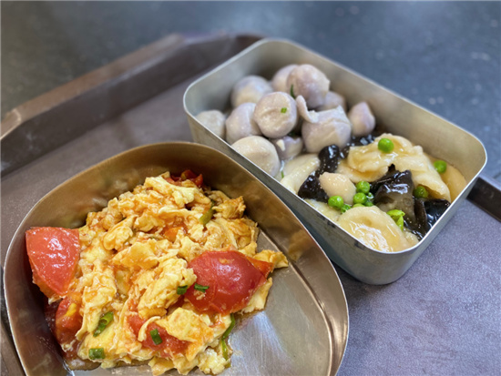 最后,陳老伯挑了三樣菜——糟溜魚片、番茄炒蛋、蔥油芋艿,一共只花了20多元?!斑@里的菜價不貴,關鍵是菜色看著清清爽爽的,這樣我們吃起來,才放心!”陳老伯說。