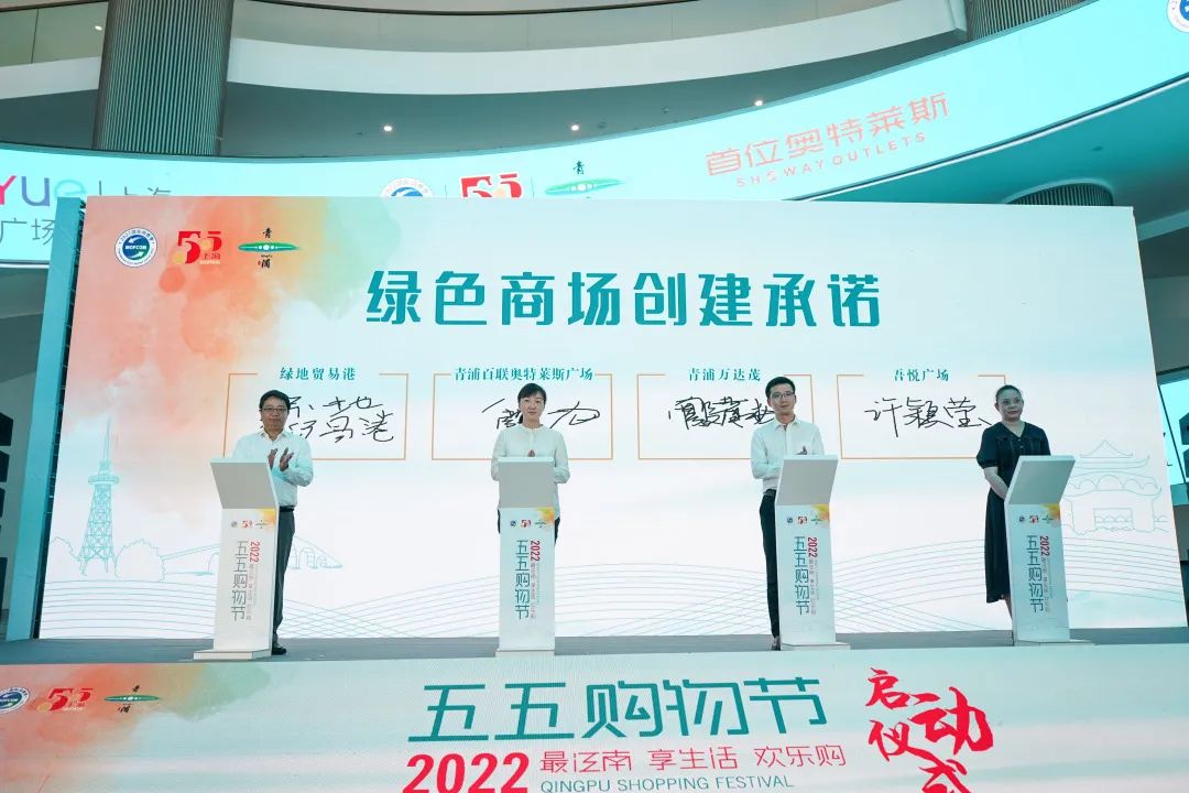 青浦區始終致力于打造綠色消費環境,讓踐行新發展理念成為更多商業主體的共識,綠色商場聯盟也由此應運而生?;顒蝇F場還為青浦區綠色商場聯盟授牌,并舉行了綠色商場承諾書簽訂儀式。