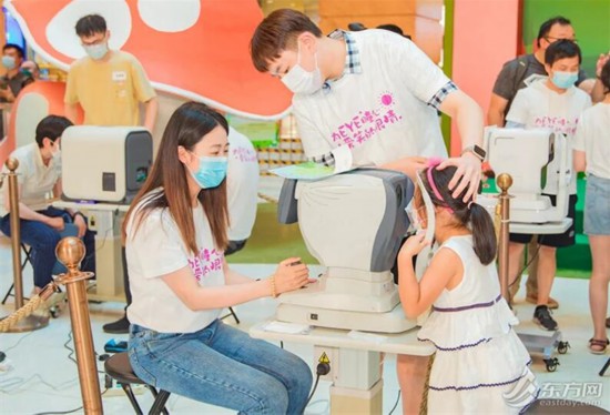 由于近距離用眼時間增多、戶外活動時間減少、電子產品的頻繁使用等可能促進近視的發生發展。在演出現場,復旦大學附屬眼耳鼻喉科醫院由周行濤院長、許燁副主任醫師、陳志副主任醫師帶領志愿者團隊為孩子們做眼健康篩查和屈光篩查,并進行公益咨詢,不僅發現有近視高危兒童,也篩查出近視,散光,斜視等異常,給予了專業的建議。
