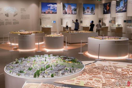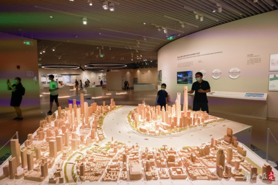 新館增加2000多平方米的展陳面積,設“序廳、人文之城、創新之城、生態之城”四個主題展廳,共展示了30個展項、40多個模型、近90部視頻短片,以及500余張攝影作品。