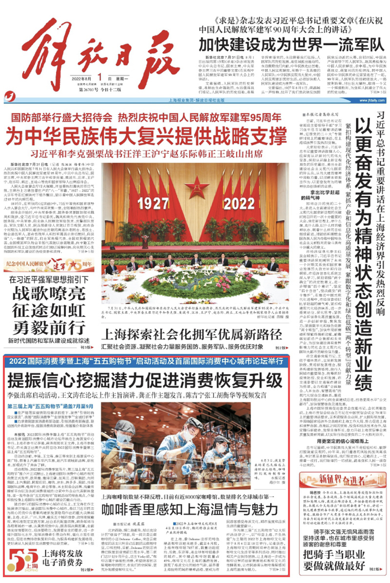 2022年8月1日解放日報一版報道