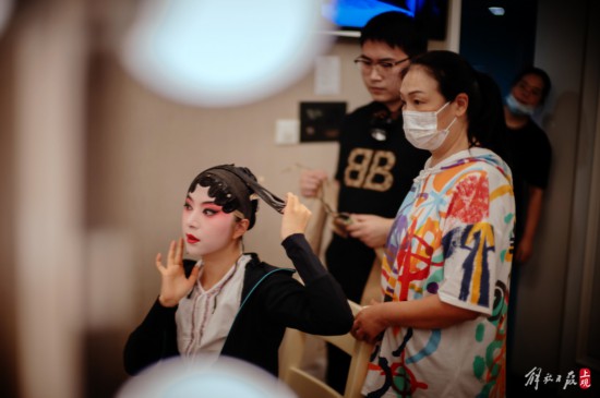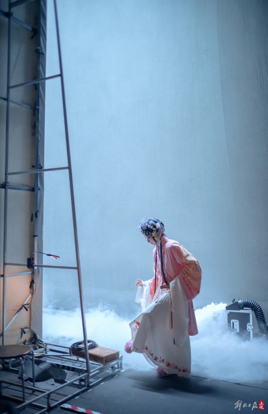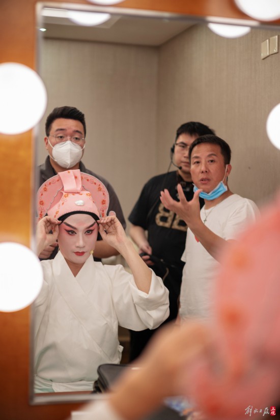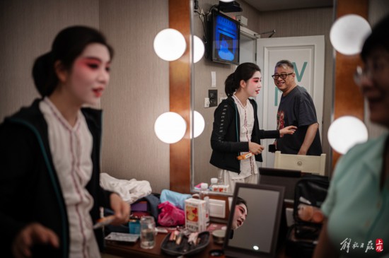 傍晚,演員們回到各自休息室,開始歷時一個半小時的化妝。制作人林愷來到單雯的房間,為她加油打氣。2012年,林愷曾擔綱過《牡丹亭》的制作人,此番對他而言算是重溫舊夢。