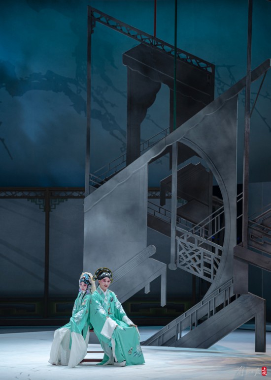 敘事的重新建構,讓這部作品變得更加緊湊,也被賦予了當代作者對于原作的獨特見解;華美的舞臺設計,既忠于原作中那座華園的精巧雅致,也以鏡面、懸吊的景片等手法,使得一部分文本中的意向更加夢幻與抽象,另一部分場景則更加清楚可感;一套套新制的戲服千針萬線,遠觀舞臺上襯托的是才子佳人絕美身姿,近看則是設計師對傳統文化的敬重和對傳統工藝的執著……
