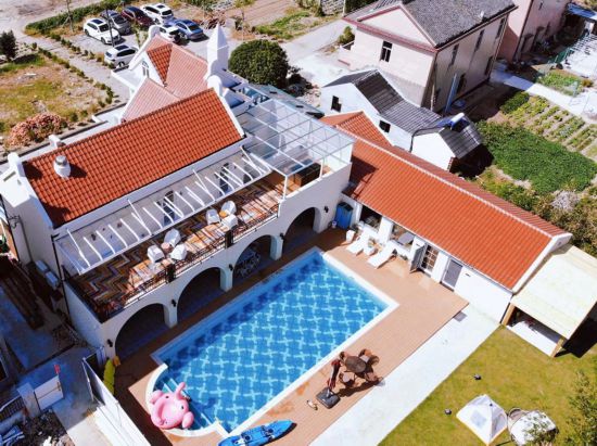 遠離城市的喧囂,回歸自然的純清,漫步竹林搖曳的悠長小徑,感受地中海的清新。晨曦,在云霧籠罩的崇明鄉野之中,很遠就看到一座造型獨特的白房子,“城邊森舍”民宿在周圍的民居中孑然獨立。作為崇明首家地中海風情民宿,朋友圈流行的“假裝在國外系列”,在民宿的泳池區域就能輕松get。