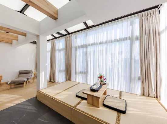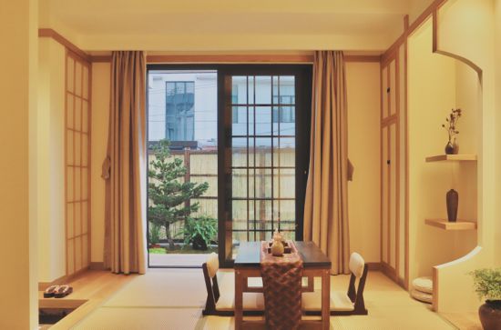 淺色系的家具和原木色的木飾,簡約的搭配顯得特別寬敞,仿佛置身一個自由且平和的空間里。暖色家具、和風的裝飾擺件,榻榻米、清酒、日料等,民宿的每一個細節,都是地道的日式風格。