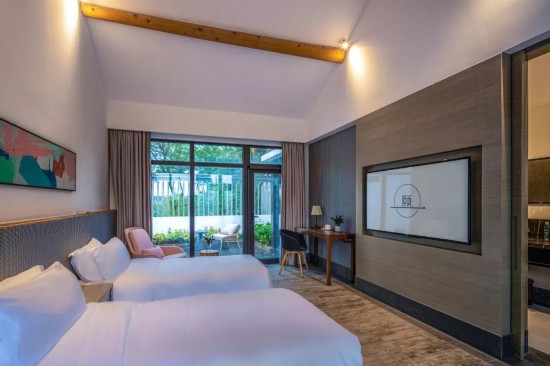 開一盞暖燈點起淡淡熏香,依在庭院的竹椅上,閉上眼睛沉思,細細品味時光。進入房間,一股清新自然的風撲面而來,房間的盡頭是幾扇木窗欞,每間房都自帶一個小庭院,景致也各不相同?!邦U一”用匠心文化底蘊融合現代設計美學,用自然健康的食材和貼近自然生態的娛樂活動,讓你在此收獲一場別致的旅程。