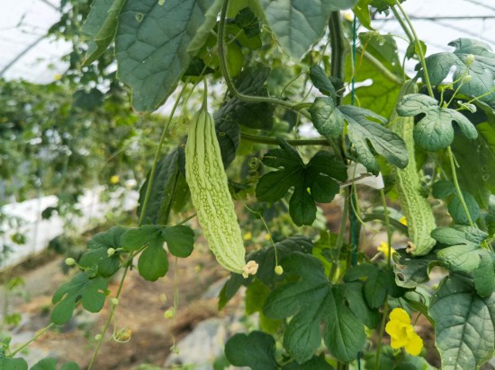 “這個苦瓜新品種,叫‘青脆1號’。它的瓜色呈淺綠色,與市面上的其他苦瓜相比,味道不太苦,適中,口感爽脆,而且具有豐產性高的優勢?!痹诂F場路演的市農科院園藝所科研人員張紅梅告訴記者,經過對該品種的前期試種,阿林果業合作社今年種了100個大棚,目前盒馬里唯一的有機苦瓜就是由其專供,每300克售價13.8元,是普通苦瓜價格的四五倍,但仍供不應求。