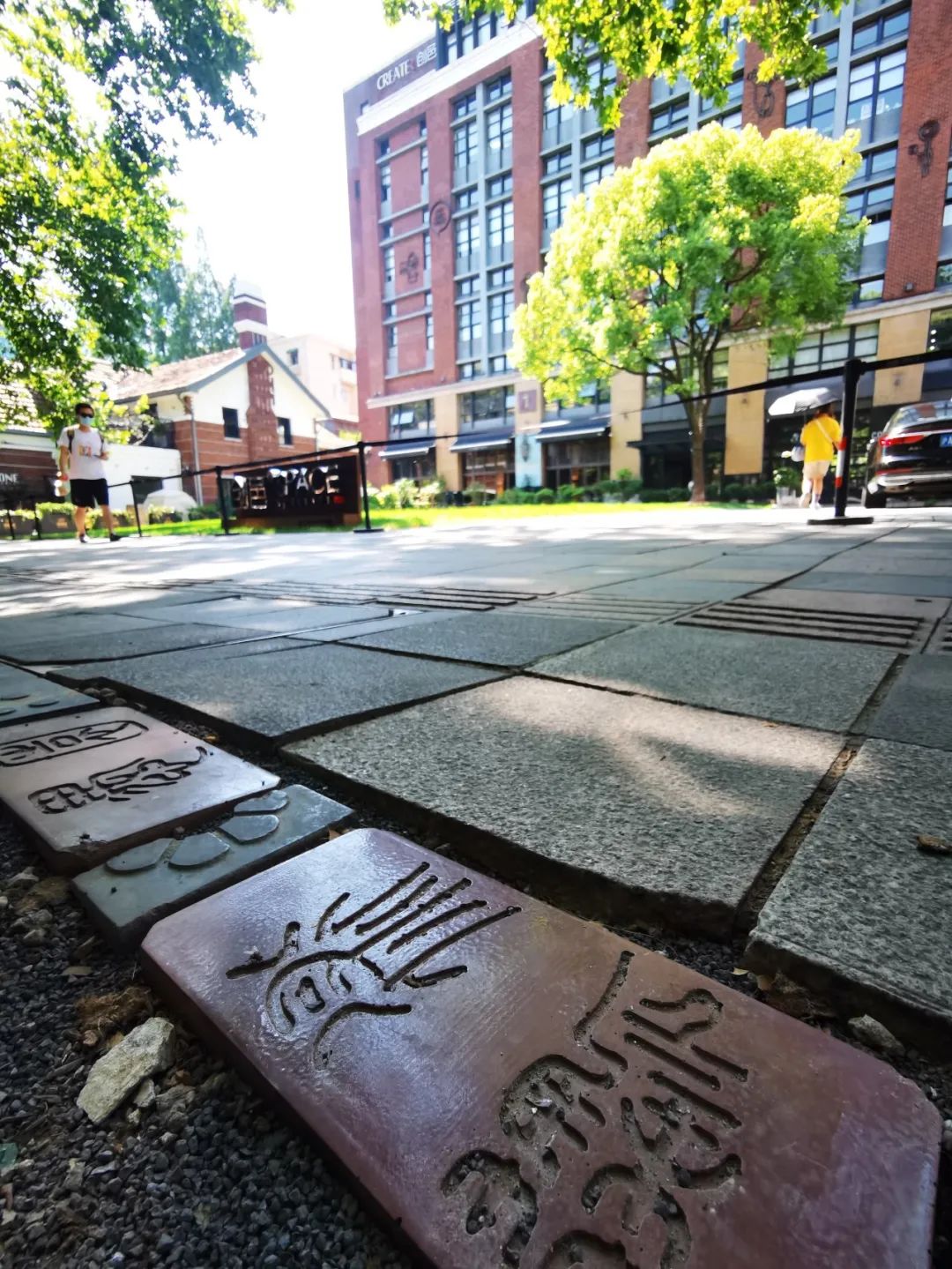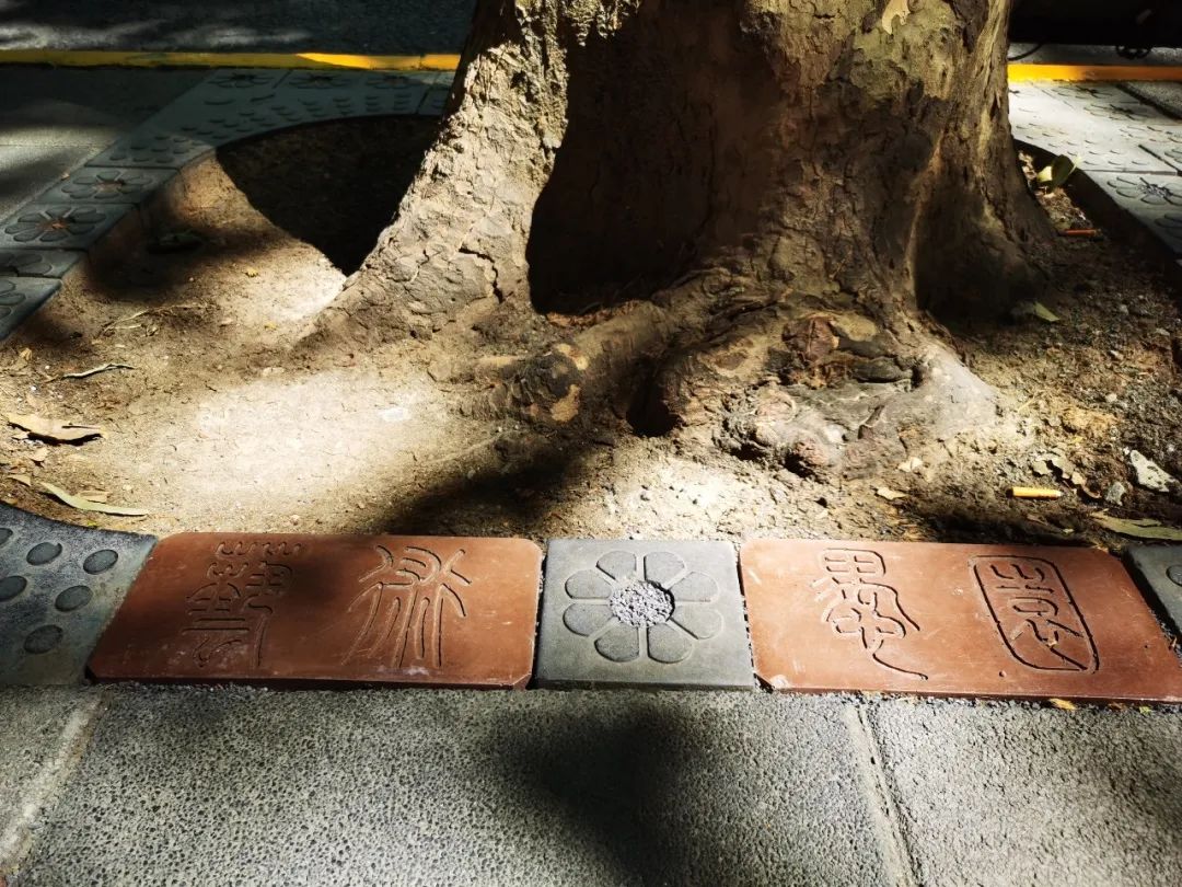 紅色的長磚,每塊上寫兩個字,每個樹穴更換兩塊磚,靈動又充滿歷史底蘊的字體,讓路過市民能夠更多了解美麗街區的主題。