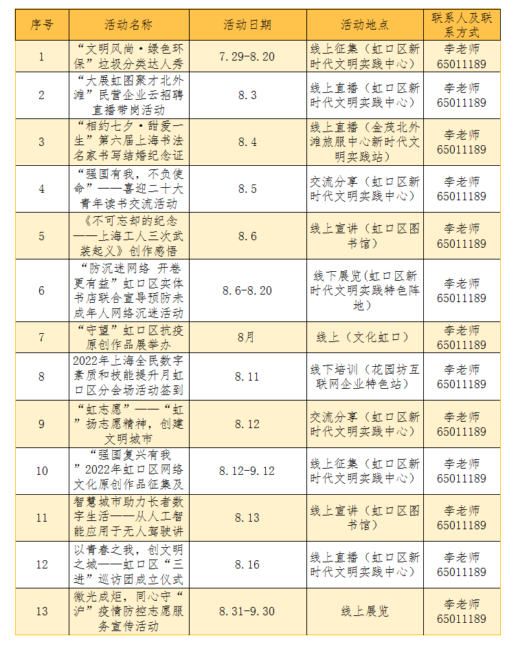 8月虹口區新時代文明實踐精彩活動不斷,邀您參加!