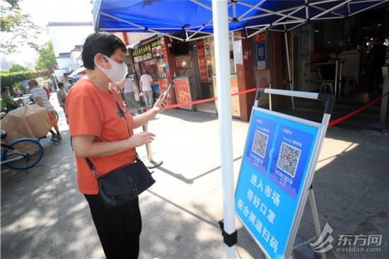 當天上午9點,記者在浦東某菜場看到,市場在早晨6點30分做了一次全面消毒,在完成場地清理、環境消殺評估和安全檢查等準備工作的基礎上向市民開放。市場劃分了進出通道,做好人員分流。市民在進入市場前,要先手機掃描場所碼,通過數字哨兵核驗入場。菜攤的經營人員和市民顧客均全程佩戴口罩,記者注意到,不少顧客都養成了手機掃碼等無接觸式支付習慣。據了解,該菜場于6月20日復市。在此之前,周邊居民只能通過電商平臺、沿街的生鮮商店、路邊擺攤的菜販子處買菜。