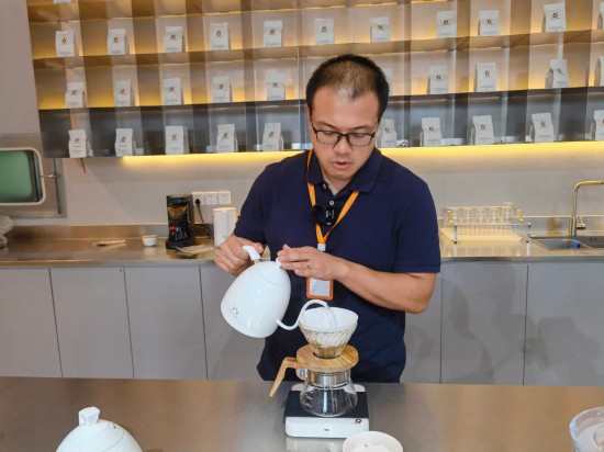 共享烘焙車間,一位獨立咖啡店老板正在用自己挑選的生豆烘焙咖啡。車間外的大廳里,三三兩兩坐著幾位咖啡采購人員,他們正在嘗試不同風味的咖啡。旁邊的選豆實驗室,一位年輕女性正在錄制面向少兒的手沖咖啡課程……