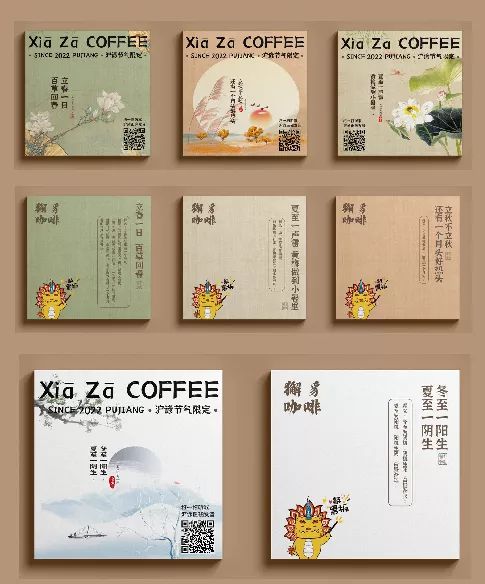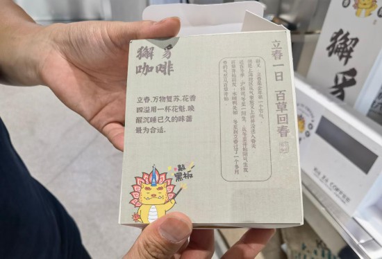 新出爐的“獬豸咖啡”,不僅包裝有設計感,內里還分了春夏秋冬四個小包裝風味,春天是花香味,夏天是檸檬味,秋天是巧克力味,冬天是紅酒味,都是咖啡豆自帶的發酵味,緊扣節氣的主題。每個小包裝上,還印了一條關于節氣的滬諺,人們可以在喝咖啡的同時,掃碼聽取滬諺的朗讀和解說,也可以說十分有趣了。