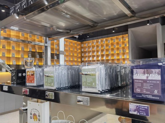 據介紹,目前,咖啡烘焙六廠可供選擇的咖啡拼配方案就有9種。比如阿克塞爾拼配,風味特點是“焦香、堅果、黑巧克力、厚重”;玉漱拼配,風味特點則是“柑橘、淡花香、堅果、巧克力、焦糖、茶感”……這些產品所用的咖啡豆,都是由六號廠房首席烘焙師新鮮烘焙而成。不僅如此,每片掛耳咖啡的內包裝也有5種材質可供選擇,外包裝視覺設計更可以按需定制。
